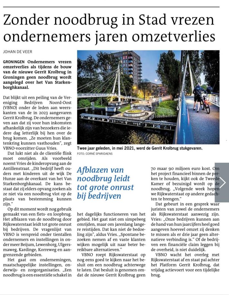 - rtvnoord.nl – actie bij Gerrit Krolbrug voor tijdelijke fietsbrug belangrijk dat die er komt